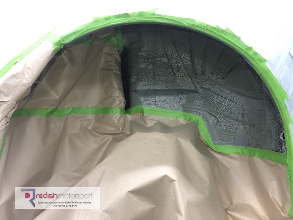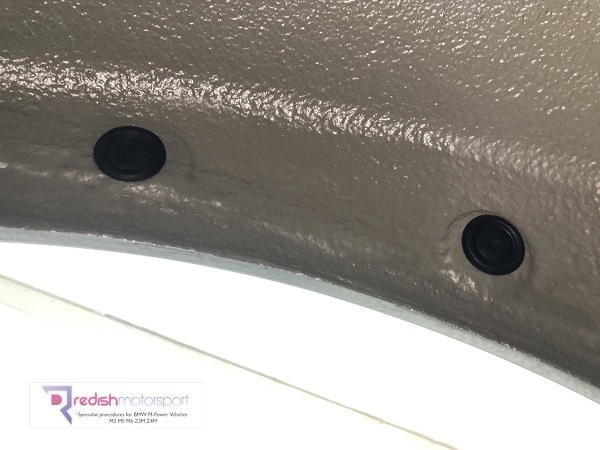 10. Primers & brushable sealers used then a sprayable textured seam sealer applied which is overcoated with BMW E-coat colouring and therefore finished as per our famous restorations.