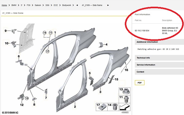 You can see BMW's approach and how much they stand by panel-bond-adhesives in a screenshot from a rear arch panel catalog showing the adhesive required: